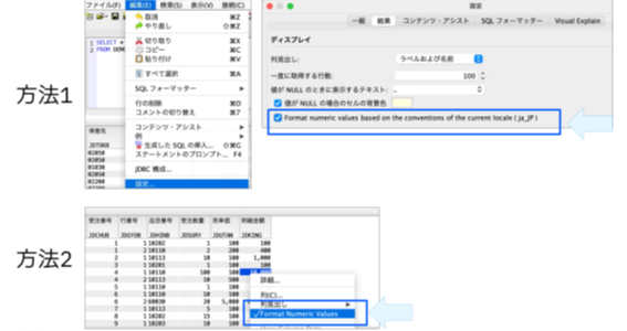 実行結果のテーブル上で右クリックし、「Format Numeric Values」を有効にします。