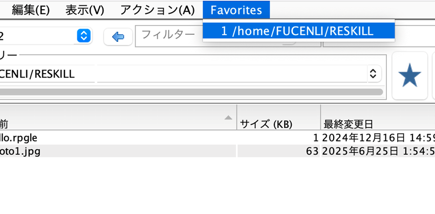 登録後は、メニューの 「Favorites」からワンクリックで該当ディレクトリーへ移動可能です。これにより、毎回パスを入力する手間がなくなり、作業効率が大きく向上します。