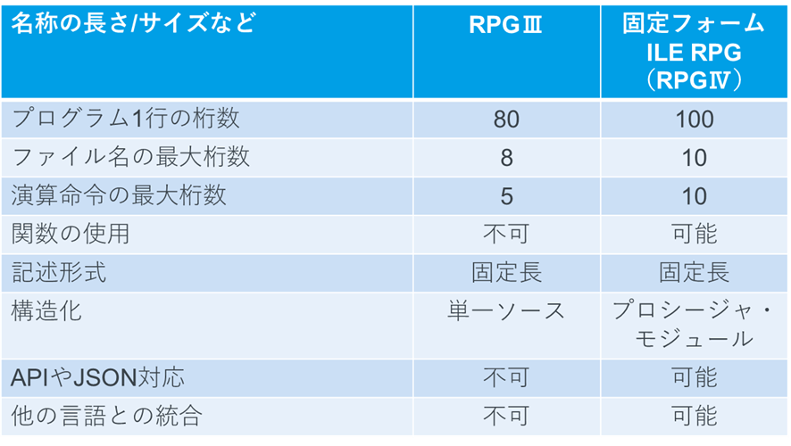 RPGⅢとILE RPGの違い