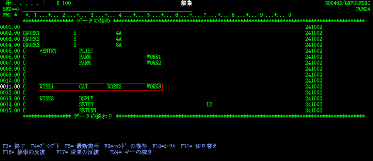 渡邊:「CAT命令でWK1とWK2の内容を連結し、WKに代入しました。」