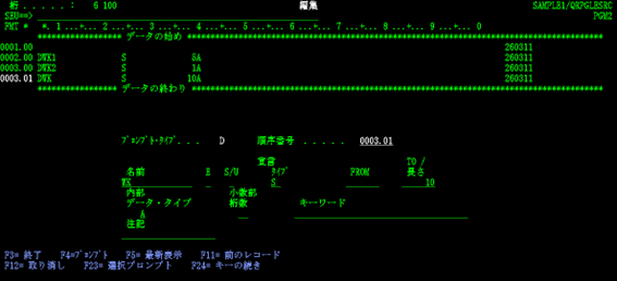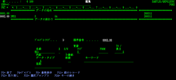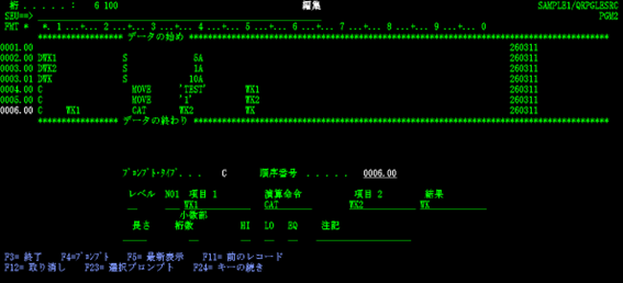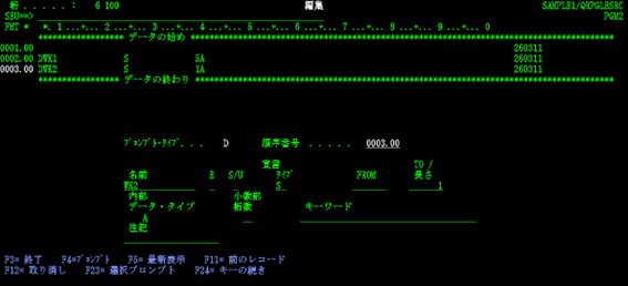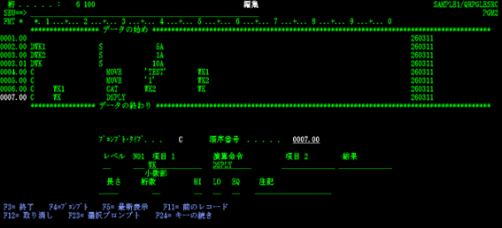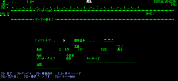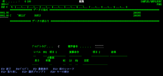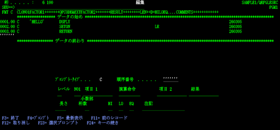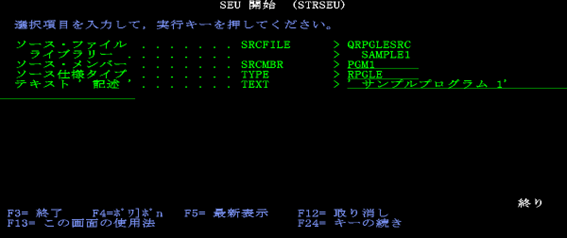 松田:「いえいえ、SEU 起動時に何(RPGⅢ・固定フォーム ILE RPG のソースメンバー、物理ファイル、論理ファイルなど)を作成しようとしているのかを指定すれば、それに合致した桁位置チェック機能が働き、さらにSEU画面でF4キーを押して表示されるプロンプトやF1キーで表示されるヘルプを使って容易に入力していけますよ。」