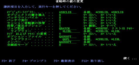 松田:「バッチでコンパイルに着目しましょう。バッチでコンパイルが【Y】になっていると、コンパイルがバッチ処理で行われて、即時実行されません。【Y】になっている場合は、『N』に変更して、『F3』で終了しましょう。この設定は、変更しない限りその後も適用されます。よって、以降のプログラム作成時には、【省略時の値の変更】の操作は不要です。ちなみに、コンパイルが【N】になっている状態は直ちにコンパイルするように指示することになります。」