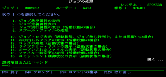 松田:「コンパイル成功です。【最高の重大度は00】の部分がポイントなのですが、詳細を確認してみましょう。『WRKJOB』を入力し、実行してください。」