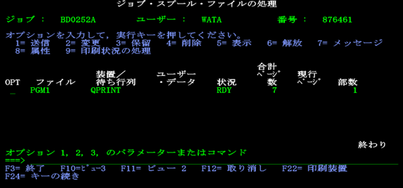 松田:「ここで、コマンド入力行に『4』を入れて実行しましょう。コンパイルの詳細な結果がスプールファイルに出力されています。」