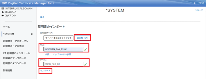 ルート証明書をIBM i (AS/400)の統合ファイルシステム(IFS)に設置する