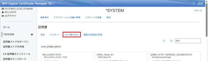 証明書ストア「*SYSTEM」にアクセス後、「CAの取り込み」をクリックします。